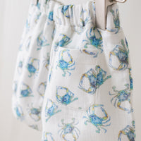Let your little one play, explore, and embrace the coastal lifestyle in the Catching Crabs Organic Muslin Shorts!